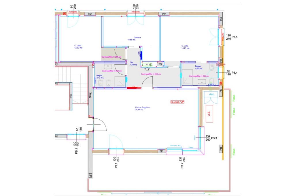 L'appartamento è così composto: luminoso soggiorno con cucina a vista da cui si accede al grande terrazzo di ben 38mq, due bagni entrambi dotati di doccia, tre camere da letto di ottima metratura.