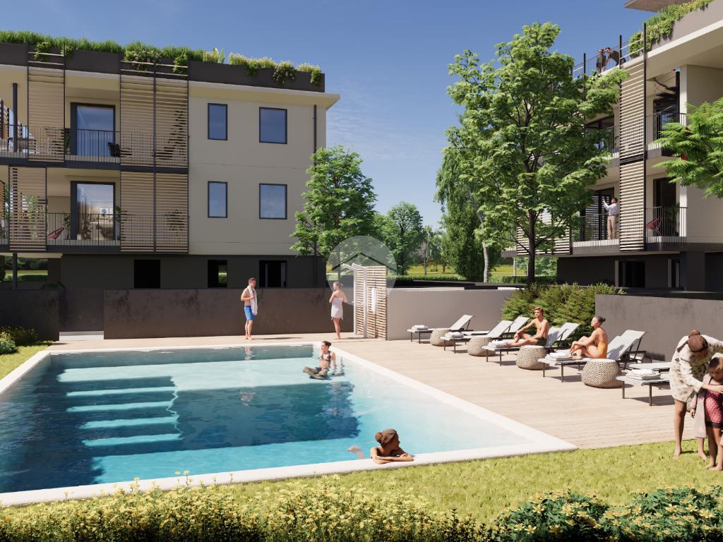Le soluzioni sorgono in contesto dotato di grandi spazi verdi e piscina comune: si tratta di due palazzine di 6 appartamenti ciascuna per un totale di 12 unità tutte dotate di box auto (singolo o doppio), ascensore e costruite secondo i più moderni standard qualitativi.
