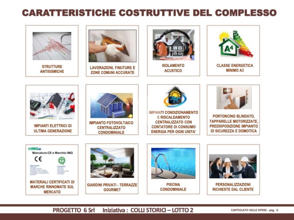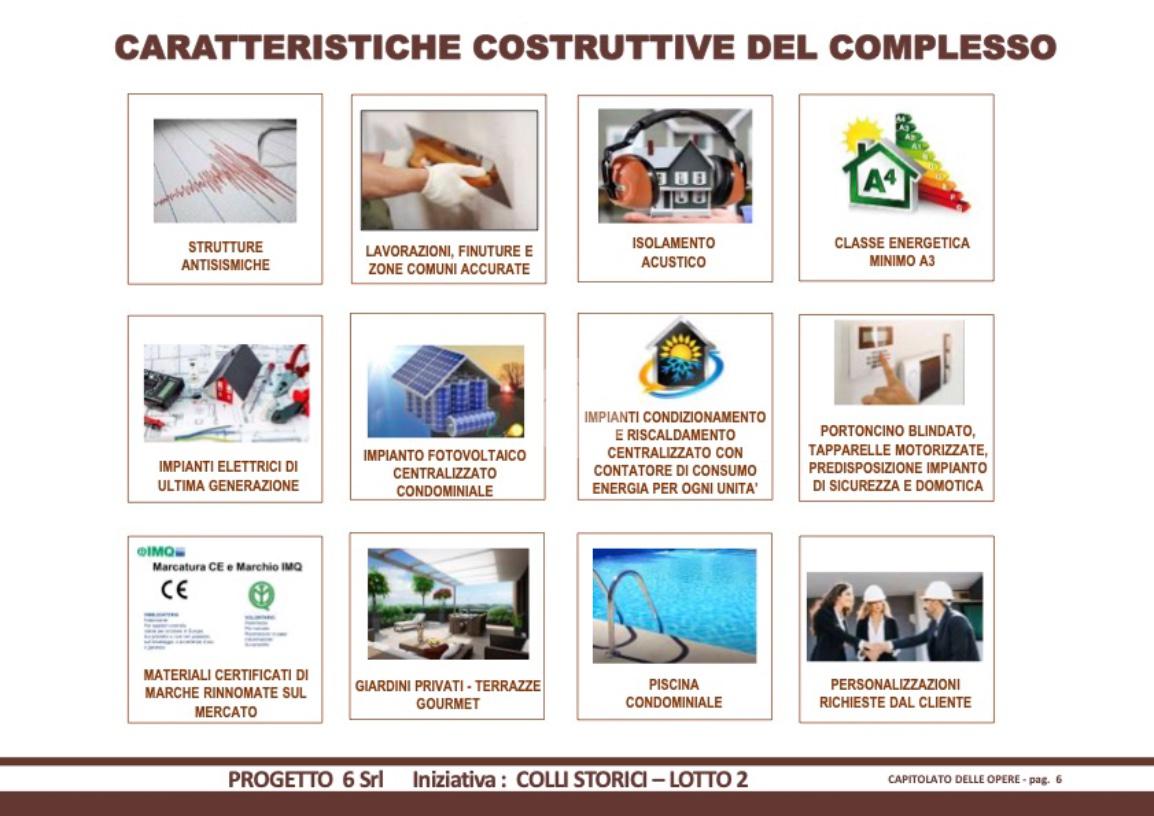 Impianto fotovoltaico, impianto di condizionamento e riscaldamento centralizzato con contatore di consumo per ogni unità, isolamento acustico, classe energetica minima A3.