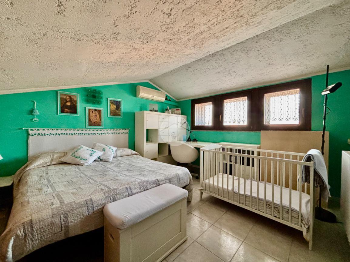 Piano terra con giardino privato, box e posto auto scoperto. Piano primo con soggiorno luminoso e cucina, entrambi con accesso ai balconi, e bagno finestrato con doccia. Piano secondo con due camere da letto, di cui una matrimoniale ed entrambe dotate di balcone, bagno finestrato con vasca. Piano terzo e ultimo dove è presente un'altra camera da letto, perfetta come studio, stanza ospiti o zona relax. Piano interrato con taverna dotata di cucina a vista, ideale per momenti conviviali. La soluzione è dotata di impianto di climatizzazione e offre spazi ben distribuiti e funzionali, perfetti per vivere la casa in ogni sua parte.