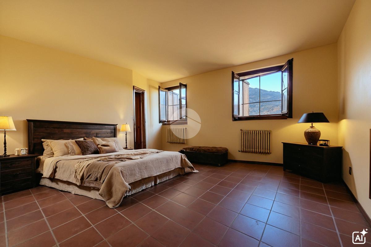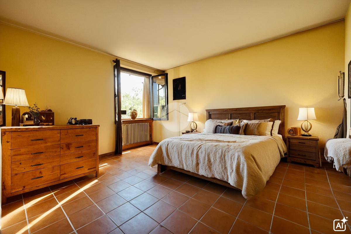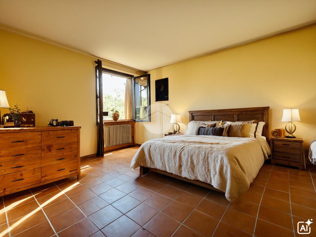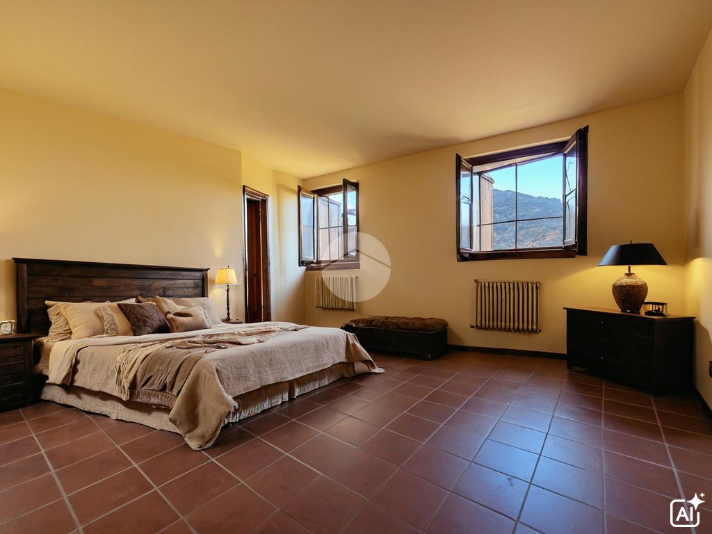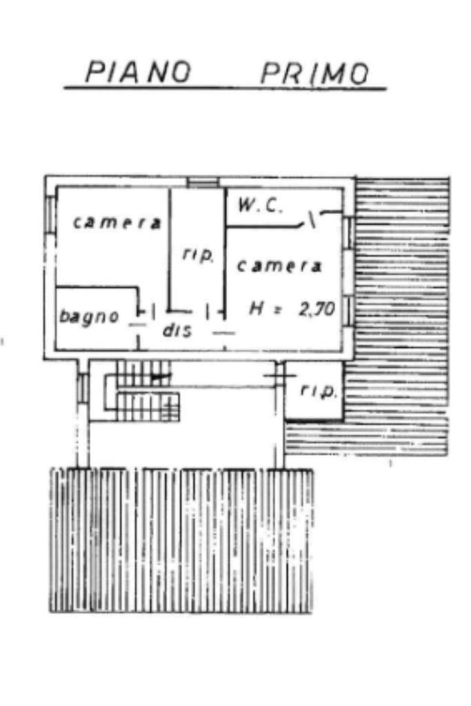 Al piano primo, tramite scala interna, abbiamo l'accesso alla zona notte composta da una camera padronale con bagno en suite e doccia, una camera matrimoniale, una cameretta e un altro bagno finestrato con vasca.