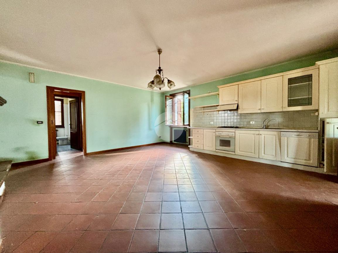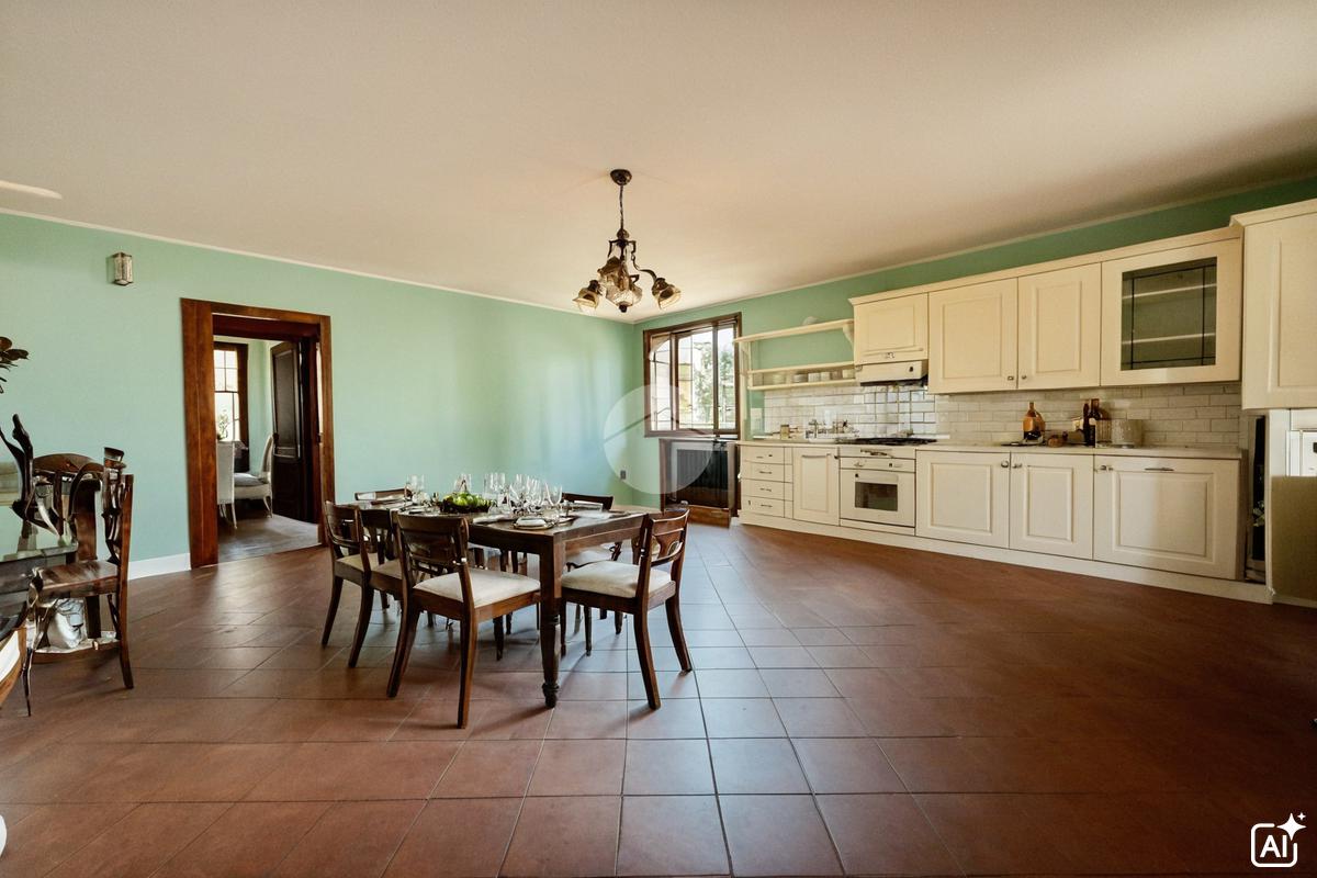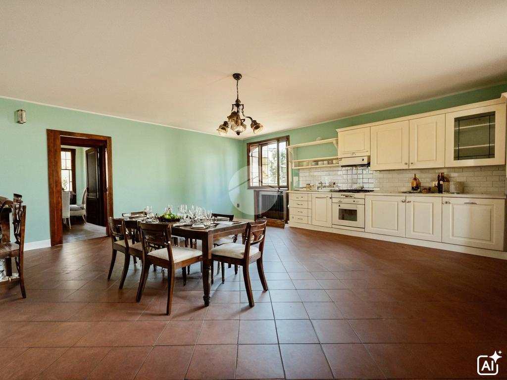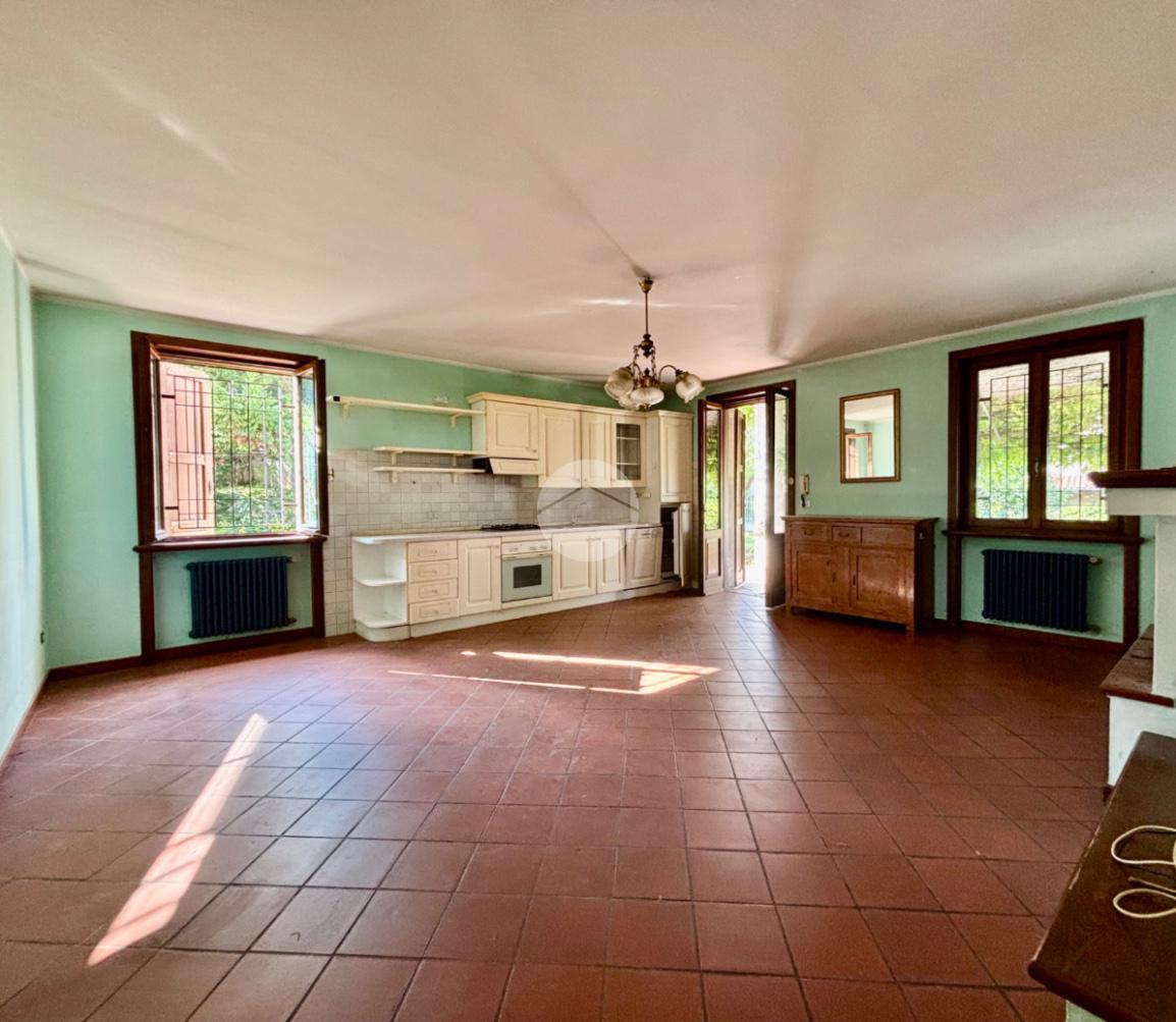 Al piano terra troviamo una spaziosa cucina abitabile dotata anche di camino, disimpegno che porta al bagno di servizio finestrato e una camera multifunzionale. Troviamo inoltre un ampio living che dispone di doppio accesso al giardino.